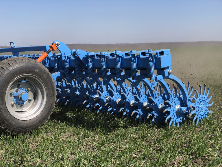 - Tarcze z zębami: Specjalnie zaprojektowane tarcze o zębach przystosowanych do rozbijania skorup glebowych, zamontowane na ramie za pomocą sprężynowych uchwytów.