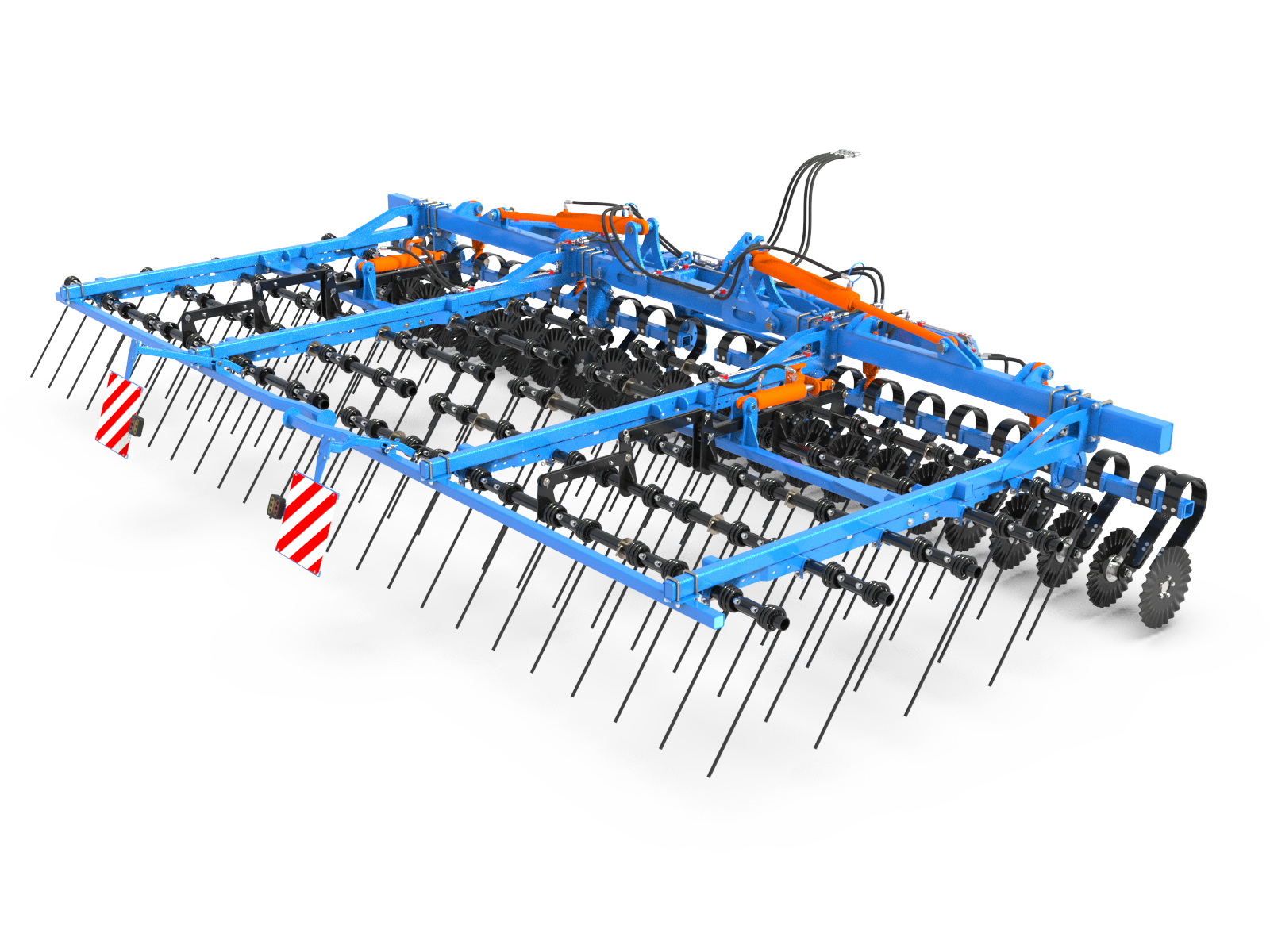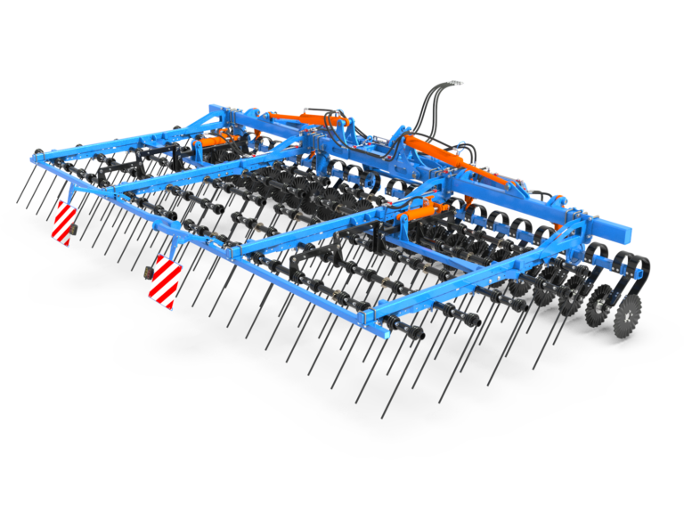 - Szeroka regulacja: Zęby sprężynowe rozmieszczone w pięciu rzędach na ramie maszyny pozwalają na precyzyjną regulację i dostosowanie do różnych warunków polowych.